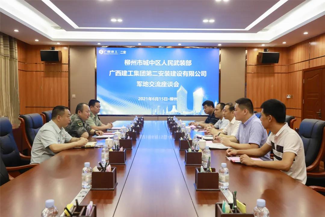 6月15日,柳州市城中區人民武裝部部長(cháng)于延偉率隊到公司開(kāi)展交流座談。公司黨委副書(shū)記、紀委書(shū)記、工會(huì )主席黃水保出席并講話(huà),公司辦公室主任羅強主持。